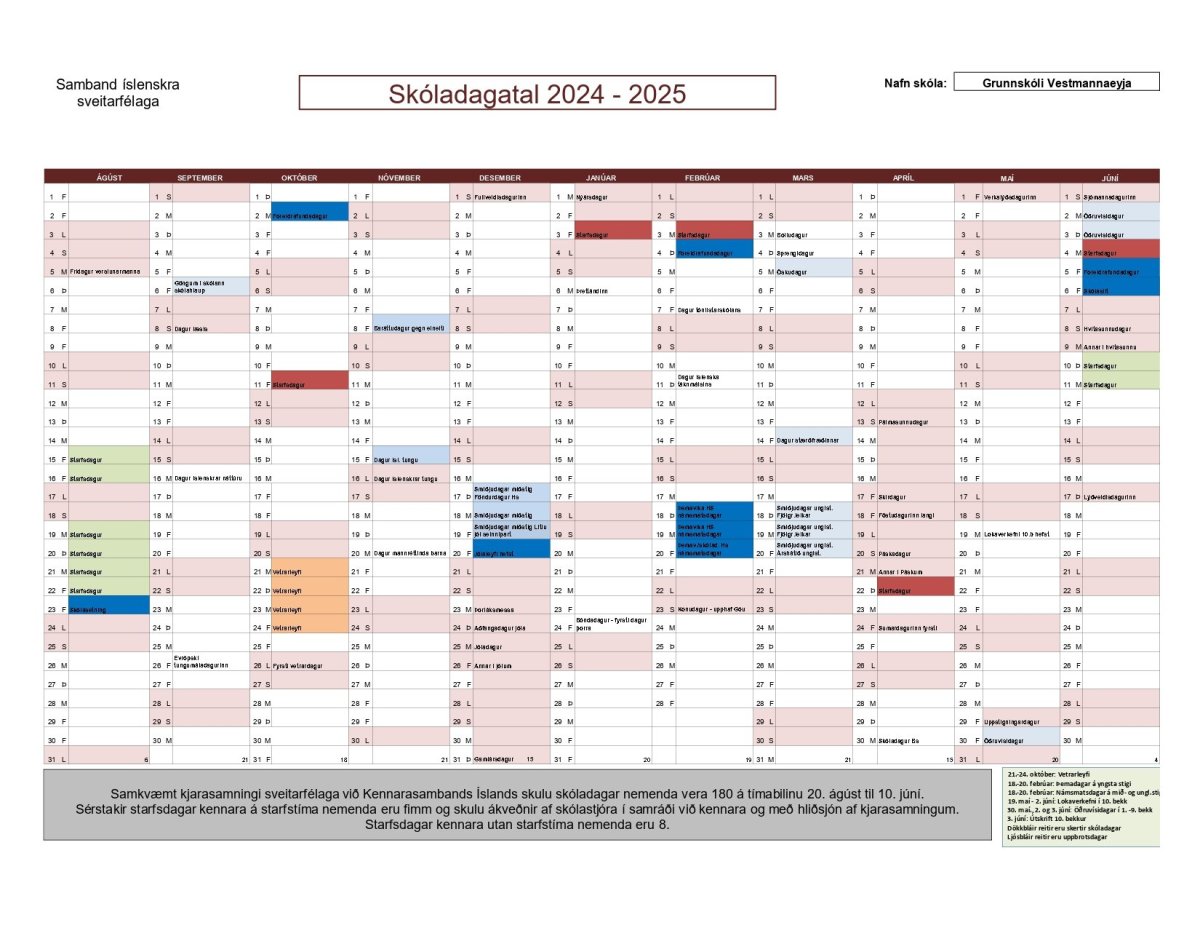 Einnig má finna sameiginegt skóladagatal Grunnskóla, leikskóla of frístundavers, með því að smella hér: Sameiginlegt skóladagatal